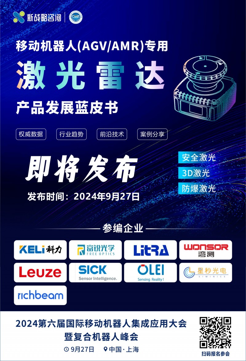 為了探析激光雷達在移動機器人領(lǐng)域的應用現(xiàn)在及趨勢,9月27日,由CMR產(chǎn)業(yè)聯(lián)盟主編,科力光電、富銳光學、力策科技、勞易測、歐鐳激光、西克、星秒光電、銳馳智光、灣測技術(shù)等企業(yè)聯(lián)合參與的《移動機器人(AGV/AMR)專用激光雷達產(chǎn)品發(fā)展藍皮書》將在“第6屆國際移動機器人集成應用大會暨復合機器人峰會”上正式發(fā)布,敬請期待!