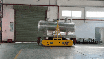 防爆車輛采用潛伏頂升、重載式全向AGV,AGV與槽車為分體結構,通過頂負板頂升與槽車連接并托起槽車轉運。
