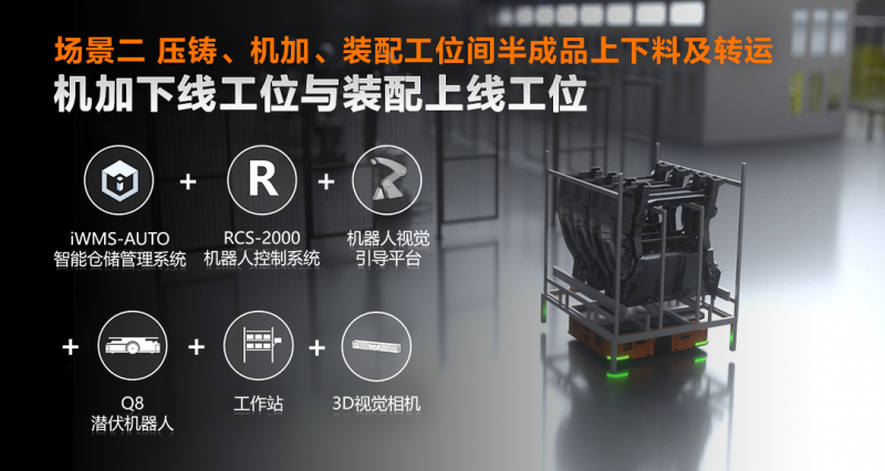 場景二 壓鑄、機(jī)加、裝配工位間半成品上下料及轉(zhuǎn)運(yùn)