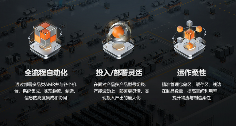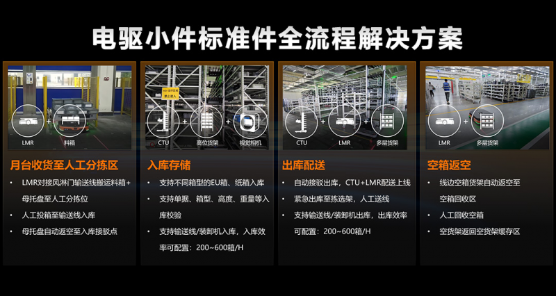 因此,海康機(jī)器人創(chuàng)新推出了電驅(qū)小件標(biāo)準(zhǔn)件全流程解決方案、電驅(qū)車間分總成工序轉(zhuǎn)運(yùn)全流程解決方案,實(shí)現(xiàn)了物流、制造、信息的高度融合與協(xié)同作業(yè),提升了運(yùn)作的柔性。