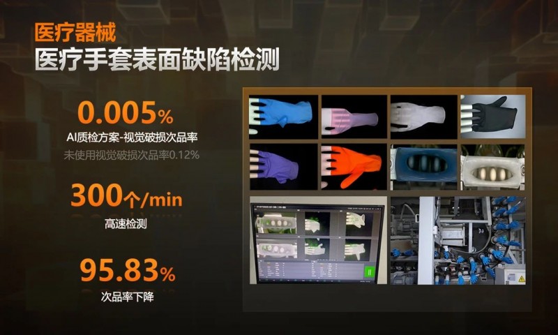 在器械領域醫用手套表面缺陷檢測的項目實踐中,海康機器人通過CCD面陣相機、AI深度學習等技術,實現了綜合缺陷漏檢率小于十萬分之五的高精度檢測,大幅提高了產線良率、效率,降低客訴率。