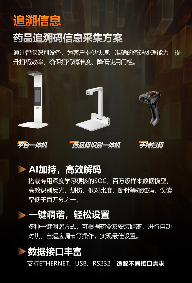此外,海康機器人還積極響應政策要求,針對藥品追溯碼應掃盡掃的需求,推出藥品追溯碼信息采集方案,助力行業客戶提升掃碼效率、確保掃碼精準度、降低使用門檻。