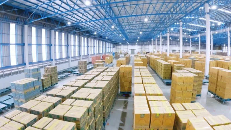 為了實現倉庫全流程自動化和24/7運營,EUROFOOD在Sa Kaeo和PRACHIN BURI兩家工廠部署了50臺海康機器人AMR。AMR系統與現有機械臂協同作業,實現從入庫、存儲、揀選到出庫的全流程自動化。
