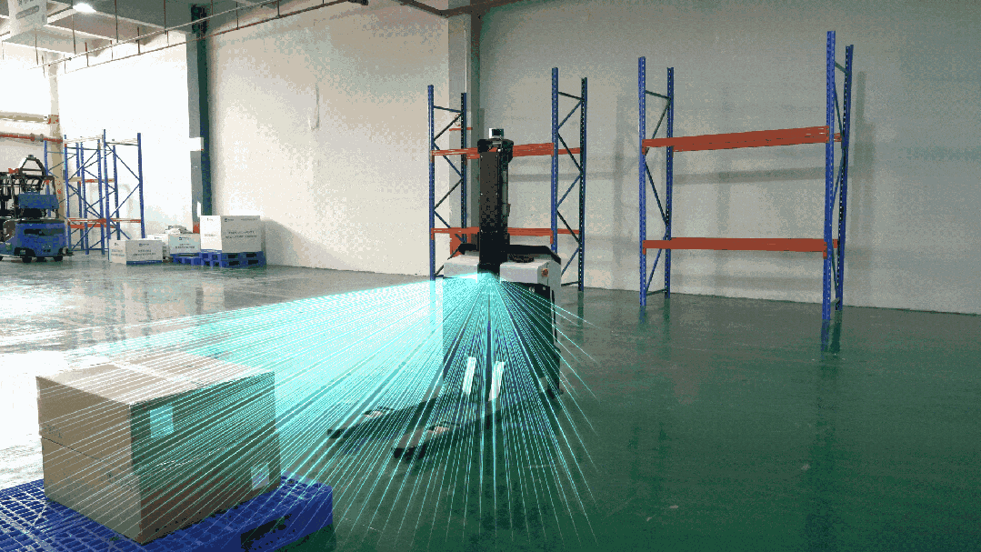 LXST20-D利用128線激光雷達精準掃描,迅速獲取托盤形狀、尺寸及位置,實現三維建模。結合先進學習算法,高精度識別棧板,精準叉卸貨物。即便面對托盤可能出現的歪斜或偏移情況,無人叉車也能迅速進行二次識別,智能調整車體與叉齒的姿態,再次精準地完成叉取作業,確保物流搬運的順暢與高效。