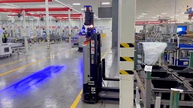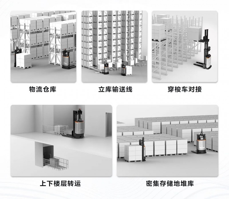 基于F4車體執行能力,兼容1.5T~3T,通過定制不同叉齒寬度長度,適配不同料架搬運,支持線邊緩存搬運、設備對接、駛入式貨架和橫梁式貨架區存儲等,叉取通道空間縮減了40%。
