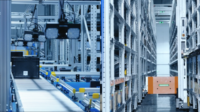該智能硬件ODM企業在2560㎡的倉儲空間,部署海康機器人STU料箱機器人、輸送線及讀碼相機等設備,實現43000個庫位數萬種原料從中央倉到附件工廠的無人化自動出入庫與精準補貨。