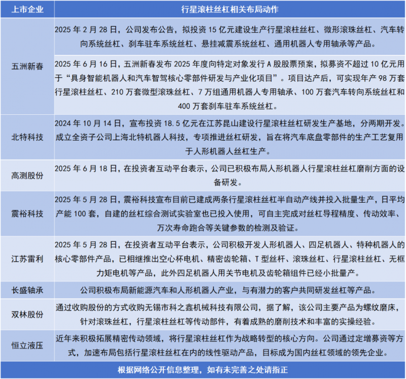 近日,五洲新春、雙林股份、震裕科技、北特科技、長盛軸承等多家零部件上市公司都在加速布局轉型行星滾柱絲杠領域,相關企業合計規劃投資金額已超過60億元。