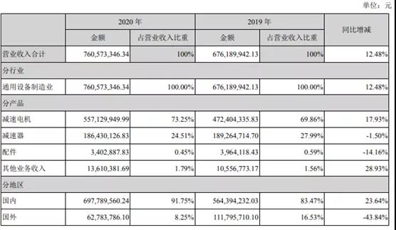 從年報(bào)來看,中大力德2020年國(guó)內(nèi)業(yè)務(wù)收入6.98億元,同比增長(zhǎng)23.64%;國(guó)外業(yè)務(wù)收入0.63億元,同比下滑43.84%。境外業(yè)務(wù)下滑明顯,主要原因是疫情原因高毛利率的海外訂單收到影響,公司海外業(yè)務(wù)占比從19年的16.53%下降到20年的8.25%。