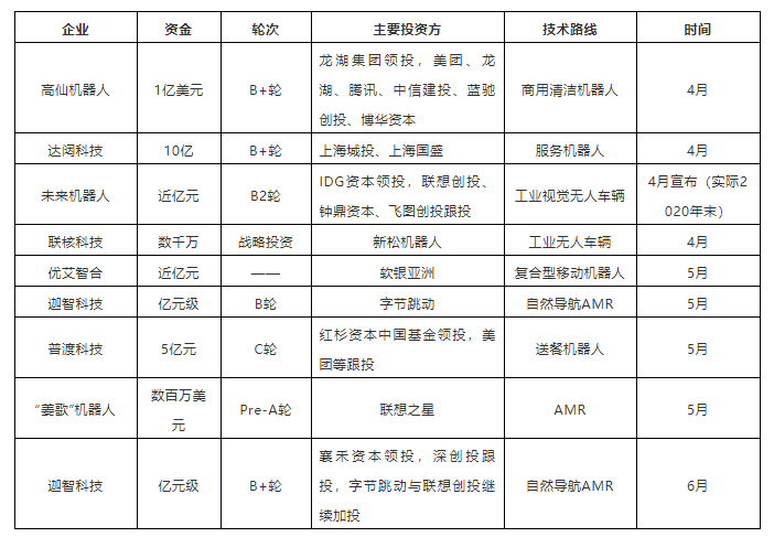 除工業(yè)應(yīng)用移動(dòng)機(jī)器人外,二季度獲得融資的還有聚焦于清潔機(jī)器人應(yīng)用的高仙、云端服務(wù)機(jī)器人企業(yè)達(dá)闥科技以及送餐機(jī)器人企業(yè)普渡科技,疫情原因,商用移動(dòng)機(jī)器人落地速度加快,經(jīng)過前期的落地應(yīng)用,部分技術(shù)成熟的企業(yè)脫穎而出,也得到了資本方的認(rèn)可。