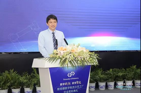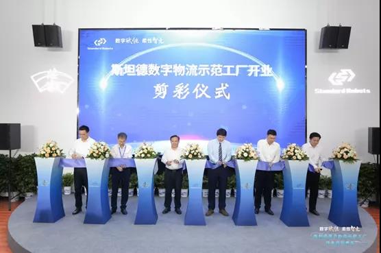 昆山市人大常委會主任張?jiān)铝帧⒗ド绞腥嗣裾笔虚L張建成、哈爾濱工業(yè)大學(xué)副校長張文叢、陸家鎮(zhèn)黨委書記方勇、陸家鎮(zhèn)黨委副書記/鎮(zhèn)長錢璁和斯坦德機(jī)器人總經(jīng)理王永錕等眾多領(lǐng)導(dǎo)嘉賓為斯坦德數(shù)字物流示范工廠開業(yè)剪彩,市鎮(zhèn)領(lǐng)導(dǎo)與斯坦德機(jī)器人相關(guān)負(fù)責(zé)人共同為斯坦德機(jī)器人安全標(biāo)準(zhǔn)測試中心揭幕,并共同參觀了斯坦德數(shù)字物流示范工廠。
