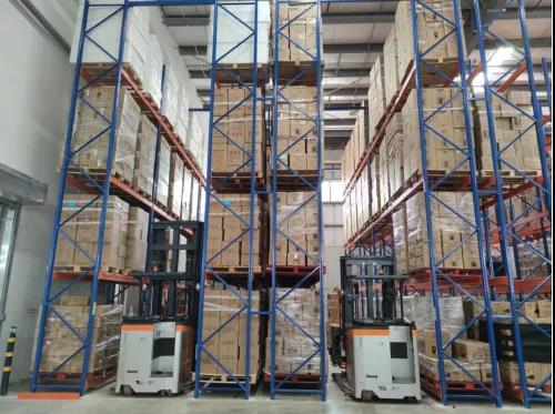 優異的性能使得VDA116三向叉車自推出以來就受到了眾多用戶的青睞。某食品配送公司,每天有大量的物料需要進出倉庫,之前都是采用地堆的方式存儲。隨著公司業務的不斷擴大,原本的存儲方式已經不能滿足他們現有的業務需求。只有將物料上貨架,在不改變現有倉儲面積的情況下,可以增加庫位。可是如果采用傳統貨架堆垛方式,在庫位的增加上并沒有很大的優勢,未來業務再擴張后,還將面臨儲位不足的問題。客戶多方比較后決定采用卓一的三向堆垛車來改造現在的倉庫。