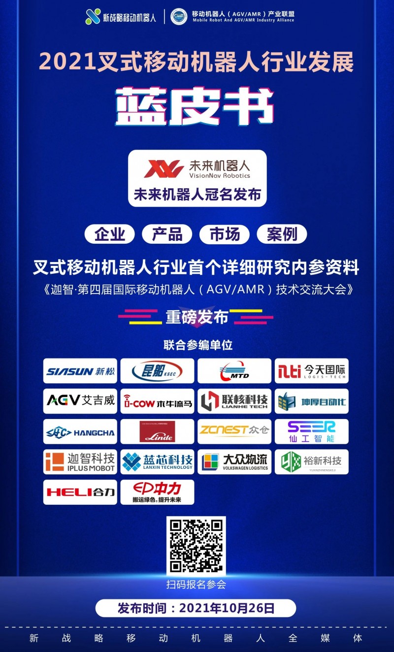 【關于叉式移動機器人更多內容,請關注由中國移動機器人(AGV/AMR)產業聯盟、新戰略移動機器人產業研究所主編的《中國叉式移動機器人行業發展藍皮書》,掃碼以下鏈接可免費報名參會并獲得藍皮書一份。】