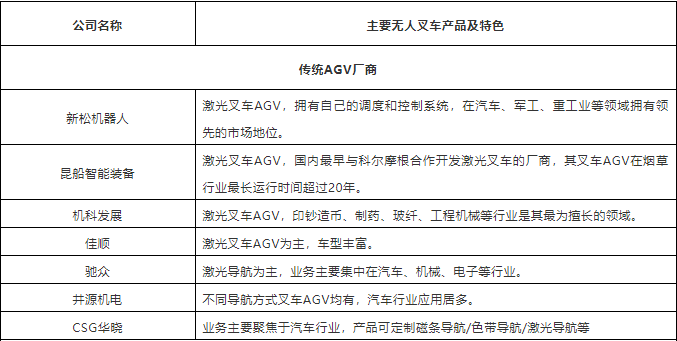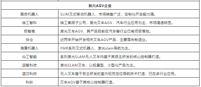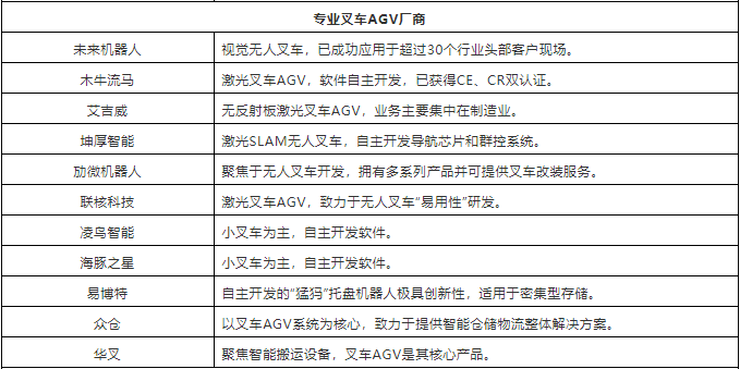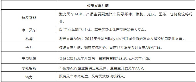 表:中國市場40+叉車AGV企業(排名不分先后,企業分類以其主營業務為依據)