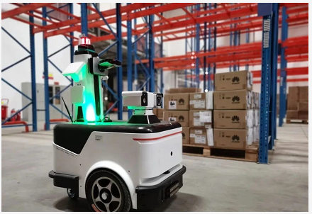 優艾智合為該倉庫打造的5G倉儲盤點巡檢機器人是集地圖識別、路徑規劃、自主導航移動、智能避障、目標物體辨識、RFID盤點等功能為一體的復合智能機器人AGV。
