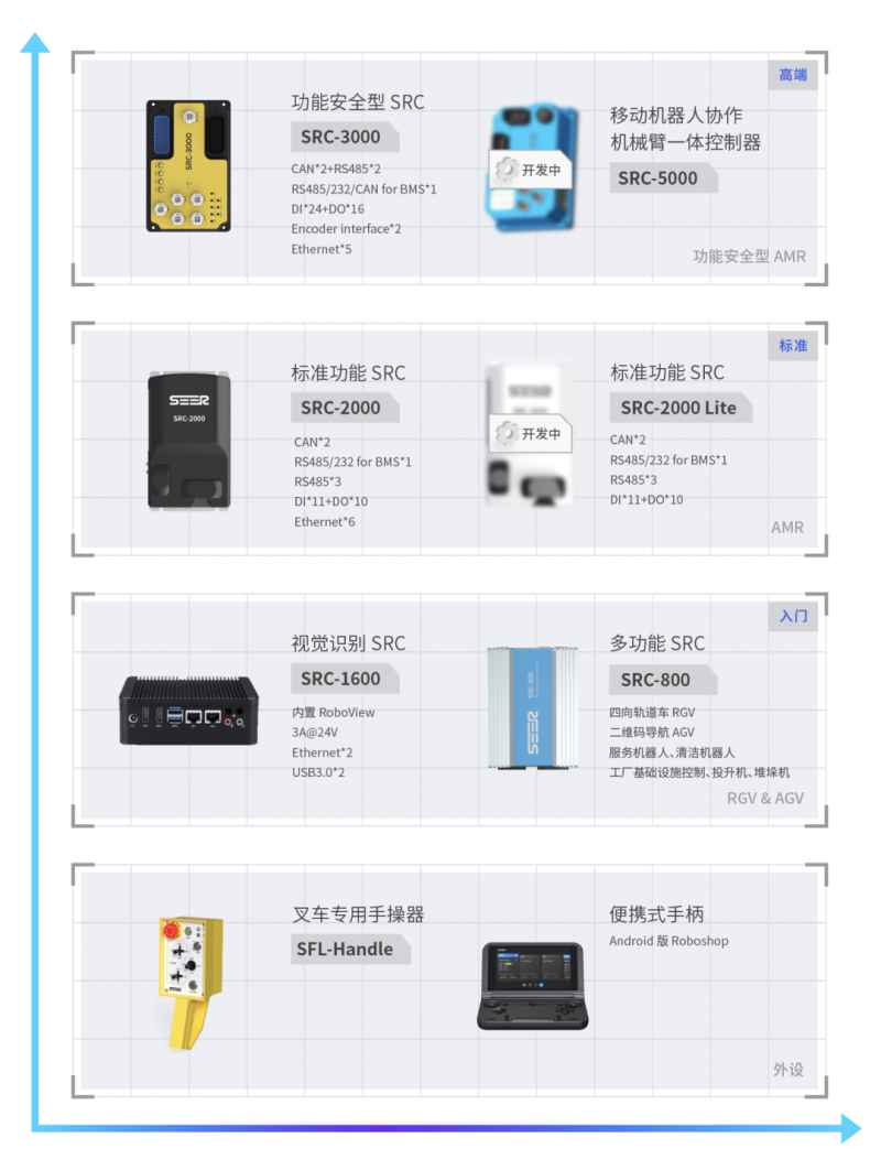 但仙工智能不限如此,現(xiàn)有的控制器產(chǎn)品線已趨于完善,既有標(biāo)準(zhǔn)功能型的控制器,也有功能安全型的控制器,既有高階的控制器,也有入門級(jí)的控制器。