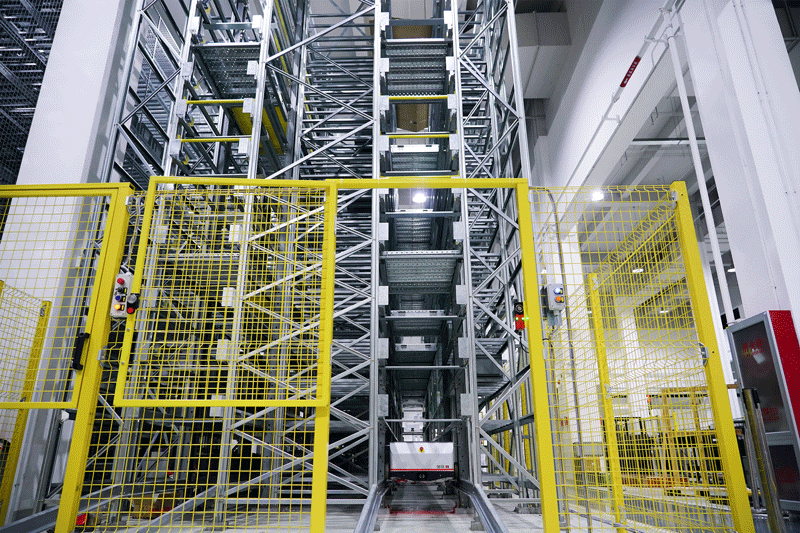 天地狼系統的靈活性還體現在可以滿足不同流量的場景需求。其單車功能復用的結構可有效應對倉庫日益增長的訂單量,靈活配置移動機器人數量,并支持異形庫及樓庫之間的互通、多車協同存取與搬運。其完全自研核心控制器和三維調度算法,則可以保證設備穩定可靠,核心元件使用壽命超百萬次,設備可靠性大于99.95%。