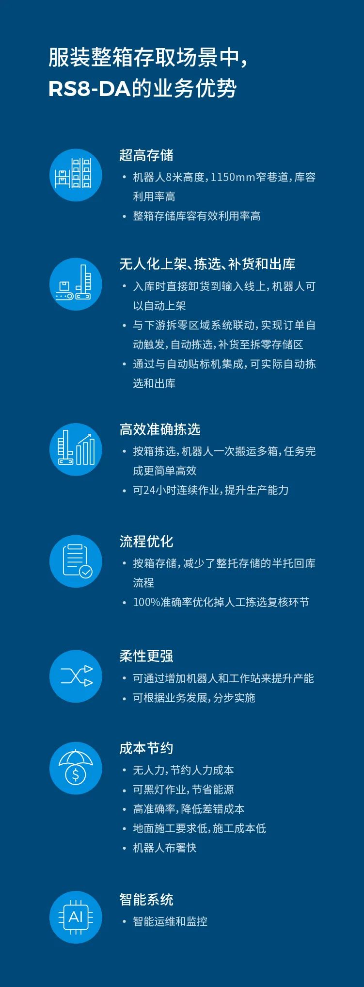服裝整箱存取場景中,RS8-DA的業務優勢:整箱全流程無人上架,揀選和出庫