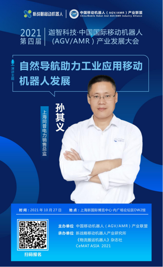 自然導航+AGV究竟會掀起什么樣的浪花?10月27日,在由中國移動機器人(AGV/AMR)產業聯盟主辦的《第四屆國際移動機器人大會》上,上海同普電力銷售總監孫其義將帶來“自然導航助力工業應用移動機器人發展”主題分享,敬請期待!