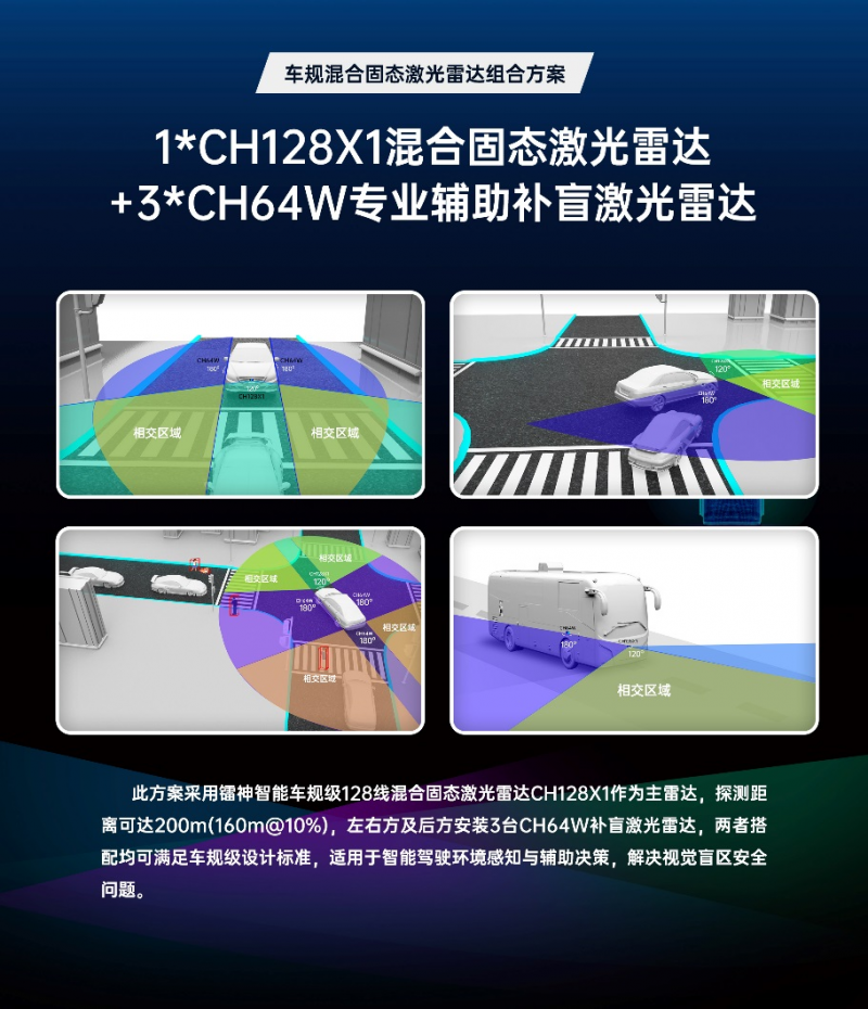 鐳神智能自主創(chuàng)新和尋求突破的步伐從未停止,于2021年先后推出車規(guī)級的CH128X1 128線混合固態(tài)激光雷達和補盲神器CH64W超大視場角混合固態(tài)激光雷達,迷你身板,蘊藏更強大的遠程探測和感知性能。
