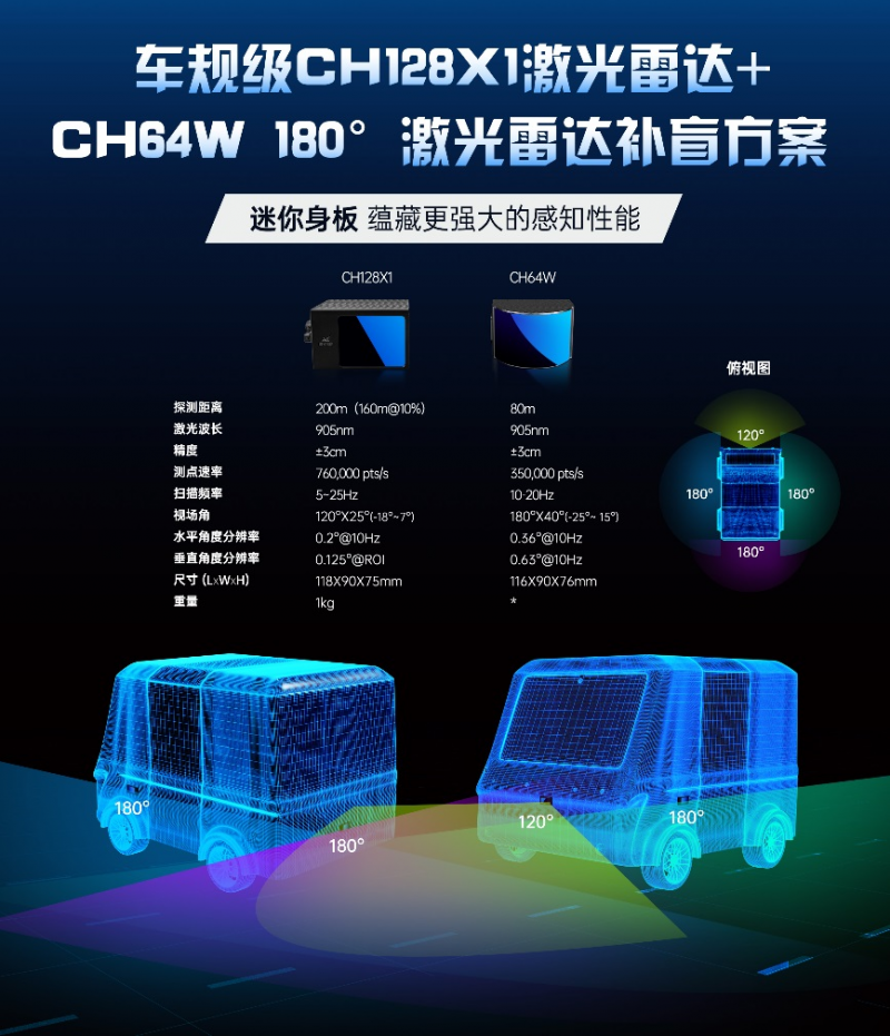 圖4:車規(guī)級混合固態(tài)激光雷達CH128X1/CH64W