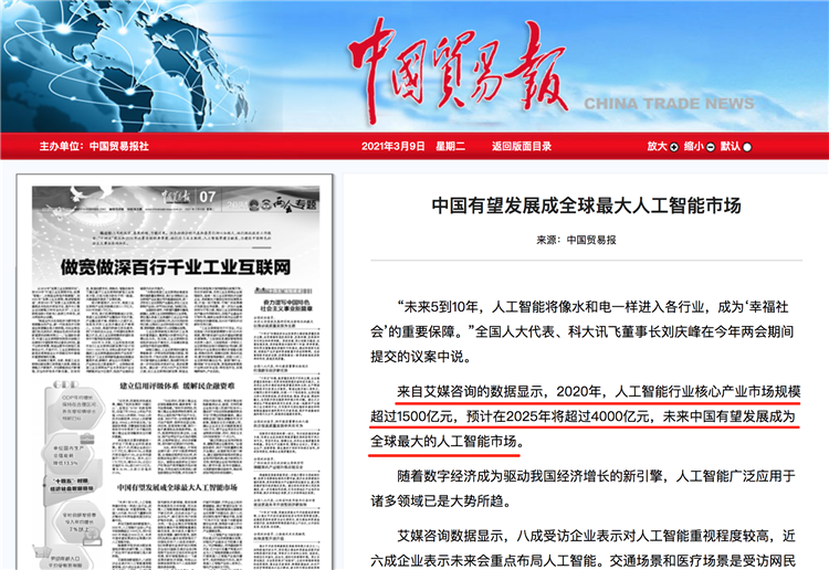 以人工智能為例,中國作為制造業大國,為其提供了豐富的應用場景。據艾媒咨詢數據:2020年人工智能行業核心產業市場規模將超過1500億元,預計在2025年將超過4000億元,中國人工智能產業在各方的共同推動下進入爆發式增長階段,市場發展潛力巨大,未來中國有望發展為全球最大的人工智能市場。