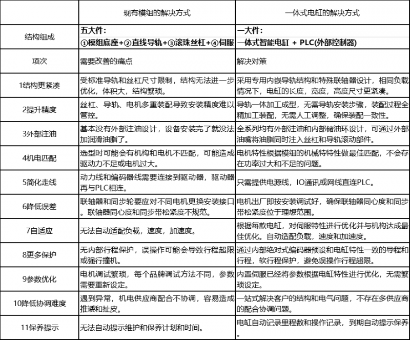 現(xiàn)有普通伺服模組和智能電缸的對(duì)比