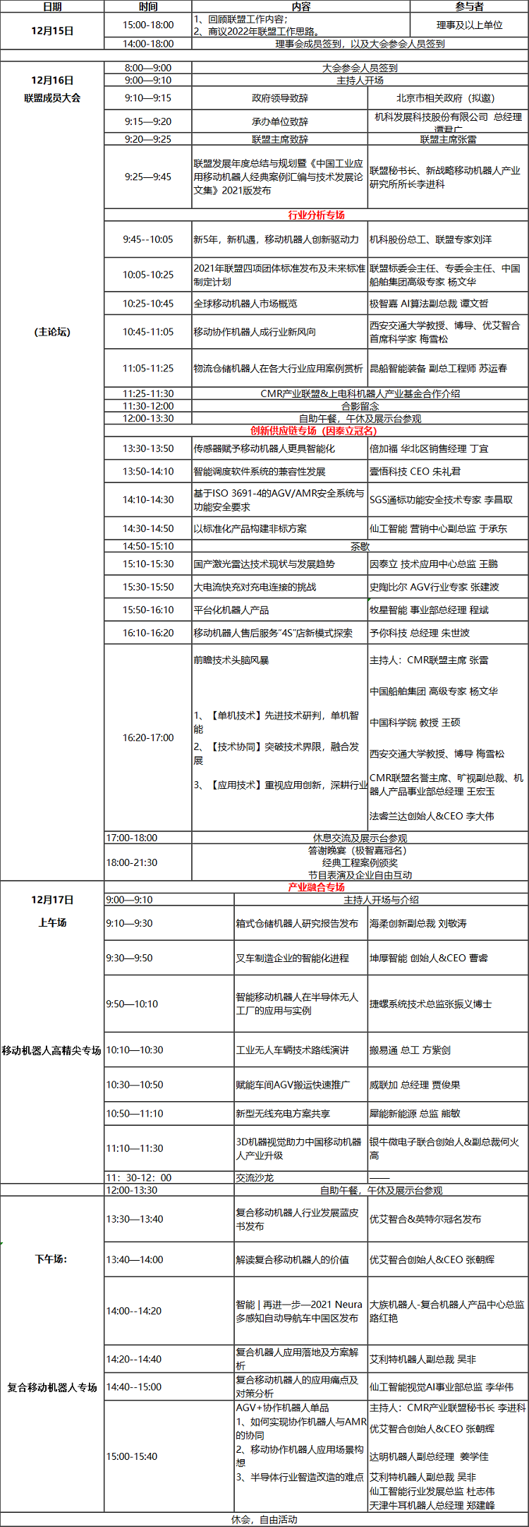 12月15-17日,由中國移動機(jī)器人(AGV/AMR)產(chǎn)業(yè)聯(lián)盟主辦的“2021 中國移動機(jī)器人(AGV/AMR)行業(yè)發(fā)展年會”將在北京舉行,敬請期待!CMR產(chǎn)業(yè)聯(lián)盟年會,是一年中最為重要的行業(yè)會議,會聊宏觀經(jīng)濟(jì)的走勢,做到自上而下的研判;會討論投資策略,以及風(fēng)險規(guī)避;會聊產(chǎn)業(yè)發(fā)生的趨勢變化、探討行業(yè)問題等。年會是打開視野、提升認(rèn)知、抓基調(diào)、定主線的重要時刻。期待每一位與會嘉賓的真知灼見。