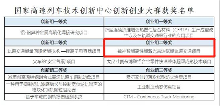 鐳神智能以高性能激光雷達賦能軌道交通項目榮膺該創新創業大賽的創業組二等獎。