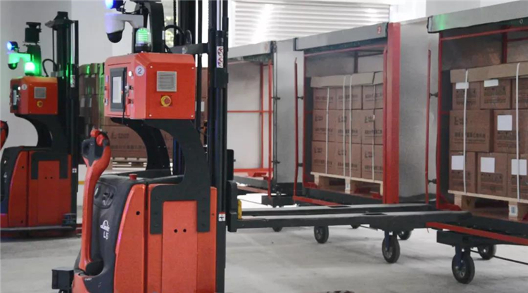 在生產(chǎn)系統(tǒng)的任務下,AGVS調(diào)度系統(tǒng)與WCS、WMS實時通訊,智能調(diào)度復雜場景不同車型之間的交互配合。戶外牽引AGV完成前端物流配送后,無人叉車聯(lián)動叉取在戶外牽引AGV料架上的貨物,并與立體倉庫中的輥筒線系統(tǒng)對接完成貨物到輥筒線上的碼放動作,隨后堆垛機接收系統(tǒng)指令,完成一拖物料的入庫數(shù)據(jù)鏈。出庫至發(fā)貨環(huán)節(jié)上,再由無人叉車完成最后一公里的搬運任務并實時反饋工作狀態(tài)至系統(tǒng)存儲分析,即“無人”物流閉環(huán)模式成型。