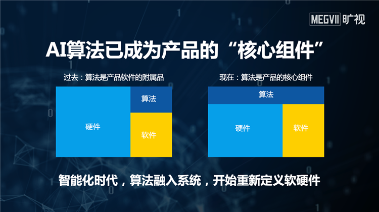 過去,算法只是產品軟件的附屬品,往往在硬件設計好后才去構建軟件。在創新智能產品的研發過程中,曠視發現,產品的易用度、特性很大程度上是由算法決定的。因此,需要在產品定義、設計、研發階段,就將算法納入考量。曠視認為,AI算法已成為產品的“核心組件”,開始重新定義軟硬件,讓產品從“不可能”變成“可能”。例如,機械臂抓取、SLAM導航、多設備協同、運籌優化等算法對于物流產品的價值很大。