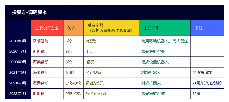 2020年至2021年,在移動(dòng)機(jī)器人行業(yè),源碼資本參與了7起融資案件,每輪融資總金額均為億元級(jí)規(guī)模。